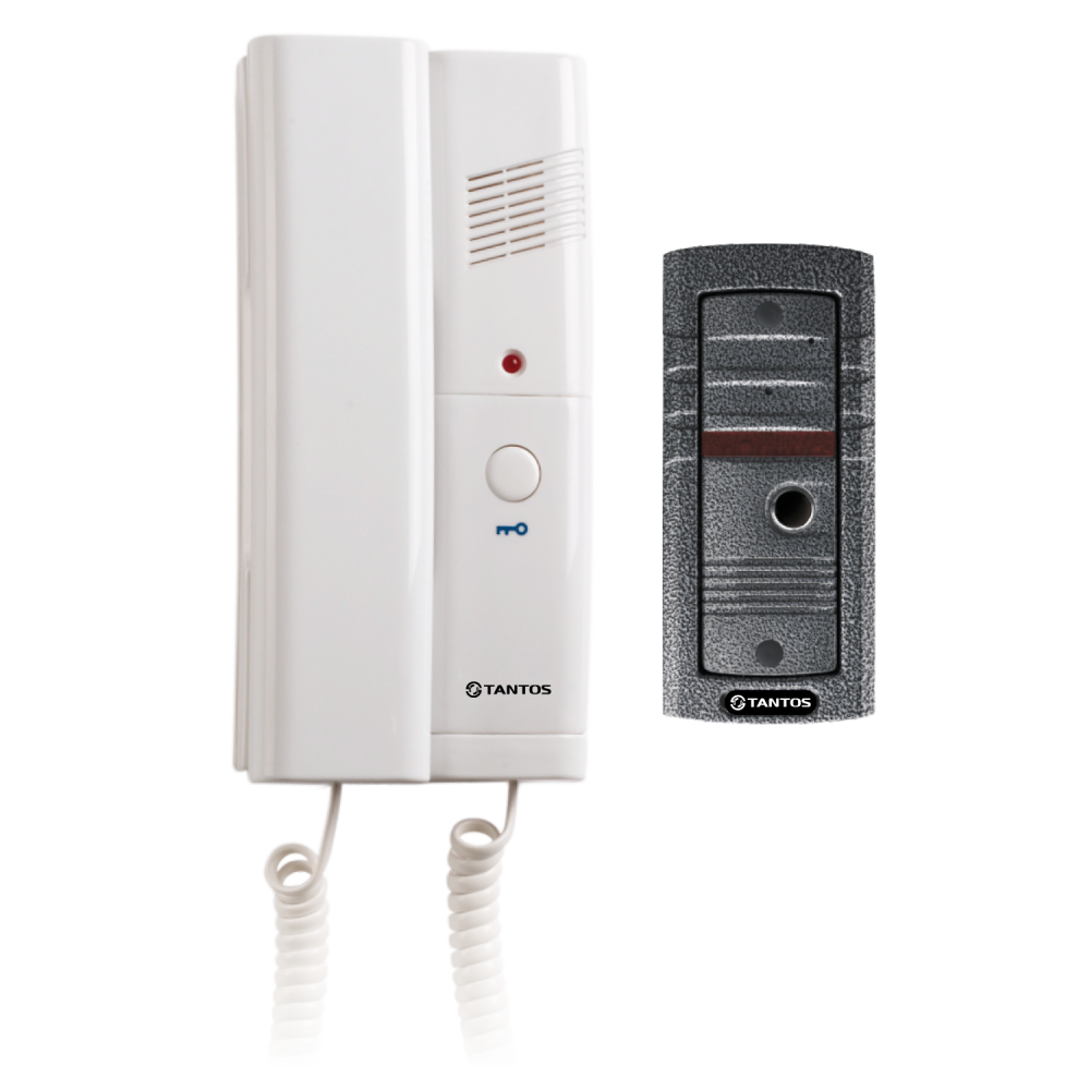 В комплект входят: вызывная панель с универсальным креплением (врезная обойма и козырек), трубка TS-203HA.