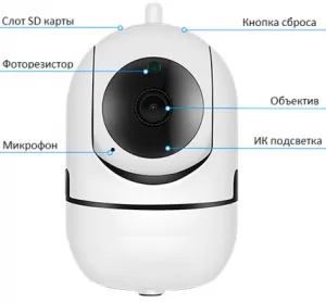 Видеокамера Wi-Fiкупольная наклонно - поворотная с ИК подсветкой мегапиксельная, 1280х720, 1/4” сенсор 0.4 Люкс (день) 0 Люкс (ночь с ИК подсветкой), автоматическое слежение за движущимися объектами, детектор движения, встроенный микрофон / встроенный динамик, поддержка microSDкарт, облачное хранение, мобильное приложение для iPhone, Android, веб интерфейс отсутствует. Питание DC 5В microUSB, ИК подсветка 5-10 м, -0+50˚C.