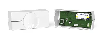 Извещатель акустический разбития стекла радиоканальный для работы в составе радиосистемы РИТМ, f-раб.433МГц, дальность обнаружения 6 м, 1 ШС для внешнего СМК, элемент питания 1 x ER14505 Li батарея 3,6 В (тип AA), t-раб. -30…+50°С, габ.размеры 48×104×34 мм.