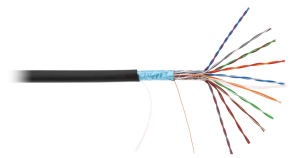 Кабель NETLAN F/UTP 4 пары, Кат.5e (Класс D), 100МГц, одножильный, BC (чистая медь), с многожильным силовым кабелем 0,50мм2, внешний, PE до -40C, черный, 305м