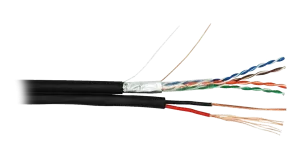 Кабель NETLAN F/UTP 4 пары, Кат.5e (Класс D), 100МГц, одножильный, BC (чистая медь), с многожильным силовым кабелем 1,50мм2, внешний, PE до -40C, черный, 305м