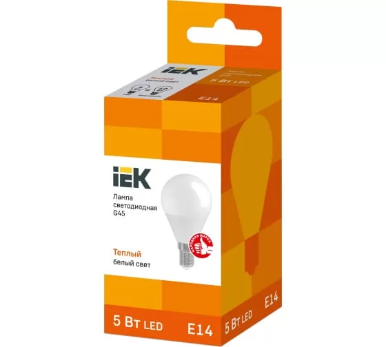 Технические характеристики IEK LED G45 шар 5 Вт 230 В 3000К E14 LLE-G45-5-230-30-E14