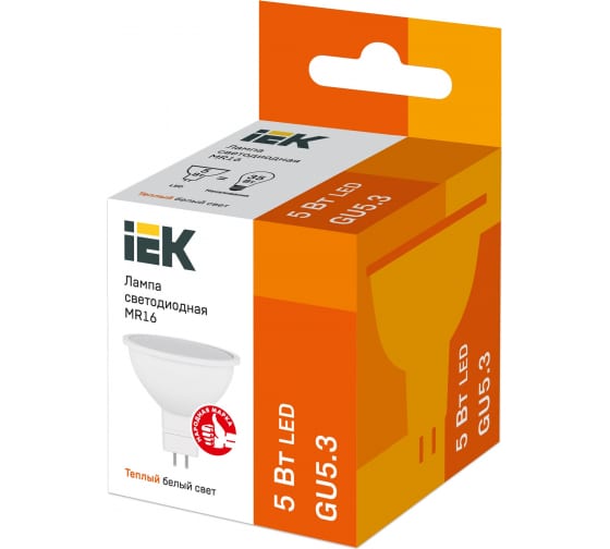 ЛАМПА СВЕТОДИОДНАЯ IEK MR16 софит 5Вт 230В 3000К GU5.3