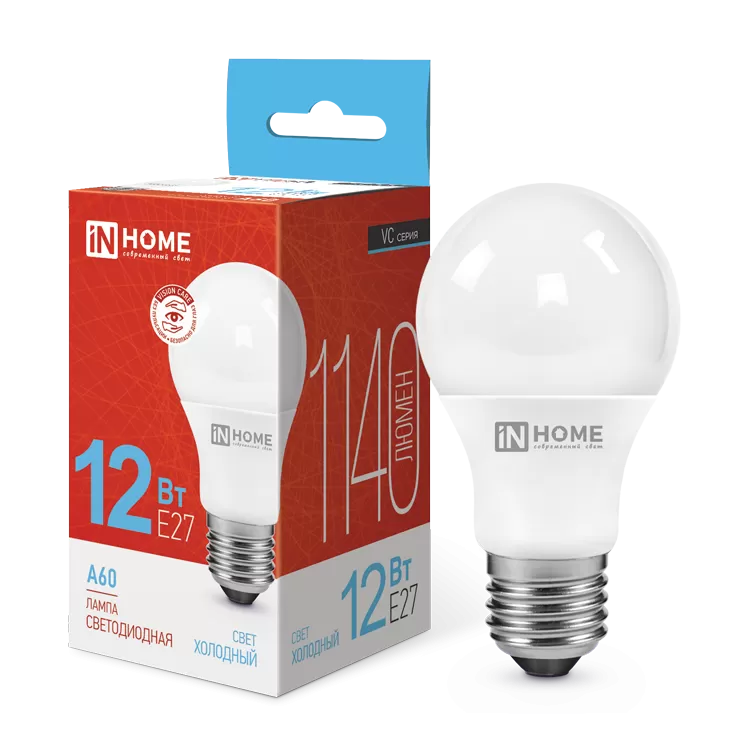 Лампа светодиодная LED-A60-VC 12Вт 230В Е27 6500К 1140Лм IN HOME