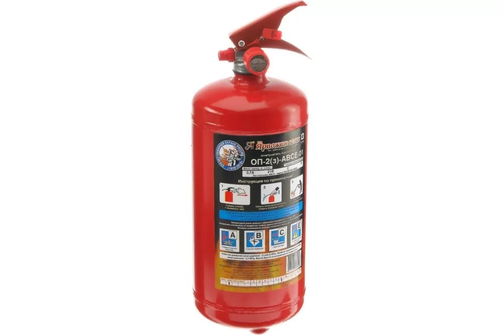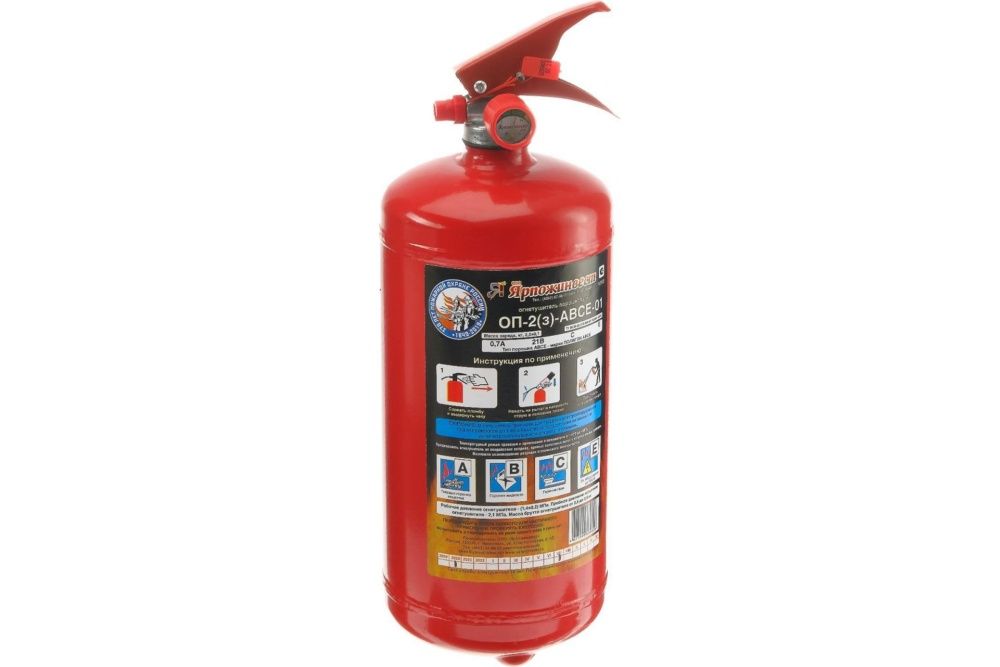 Огнетушитель Ярпожинвест ОП-2 з АВСЕ 00000000011 устройство представляет небольшой цилиндрический баллон красного цвета с закачанным внутрь материалом. Укомплектовывается сертификатом соответствия качества, паспортом.