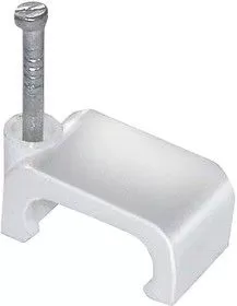Скоба с гвоздём предназначена для быстрого и надежного крепления плоских кабелей к дереву, прессованному картону, швам кирпичной кладки, к штукатурке, бетону, кирпичу. Изготовлены из гибкого негорючего ударопрочного полипропилена, гвоздь - закаленная оцинкованная сталь.