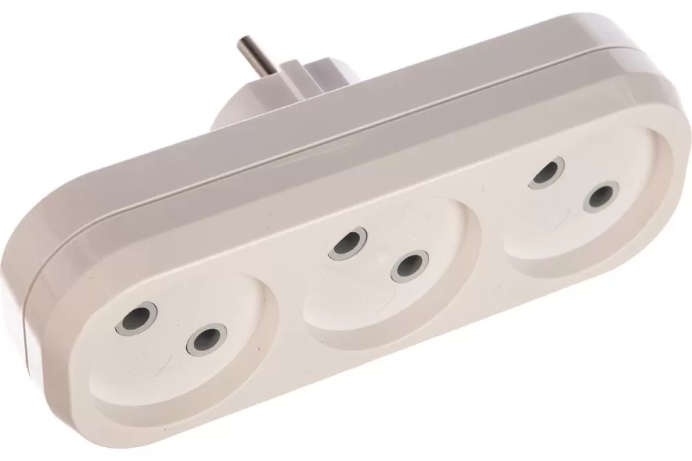 Плоский разветвитель 3 гнезда, без заземления, белый 10А 250В UNIVersal А203 изготовлен из прочного и надежного пластика, имеет белый цвет корпуса. Прибор позволяет подключать одновременно до трех электроприборов к одной стационарной розетке.