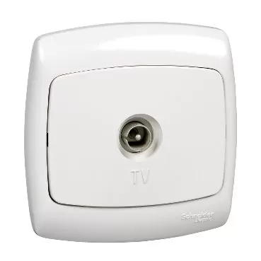 Розетка Schneider Electric Рондо (скрытой установки, белый) телевизионная предназначена для подключения телевизионного кабеля к сети.