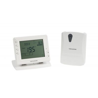 Точность регулировки: 0,5 °С. Беспроводной комнатный термостат TEPLOCOM TS-PROG-2AA/3A-RF состоит из термостата, который размещается в жилой комнате и приёмника, который устанавливается возле котла. Передача сигнала осуществляется по радиоканалу, а питание термостата при помощи батареек. К данному термостату не нужно прокладывать провода, поэтому его можно расположить в комнате, в любом удобном месте, это особенно актуально, если монтаж осуществляется после ремонтных работ в доме.