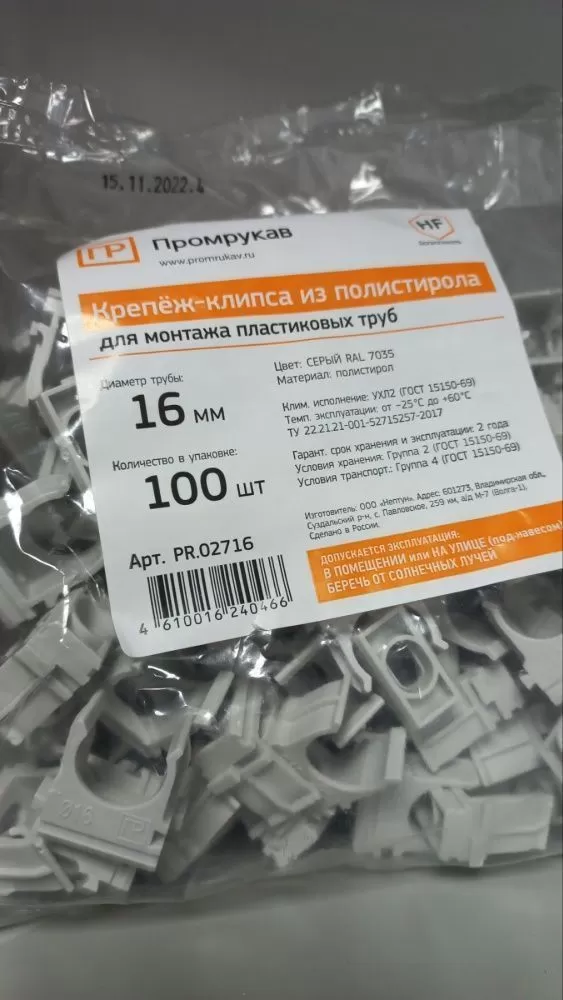 Крепеж для гофры D16 пластик CF16 ПРОМРУКАВ