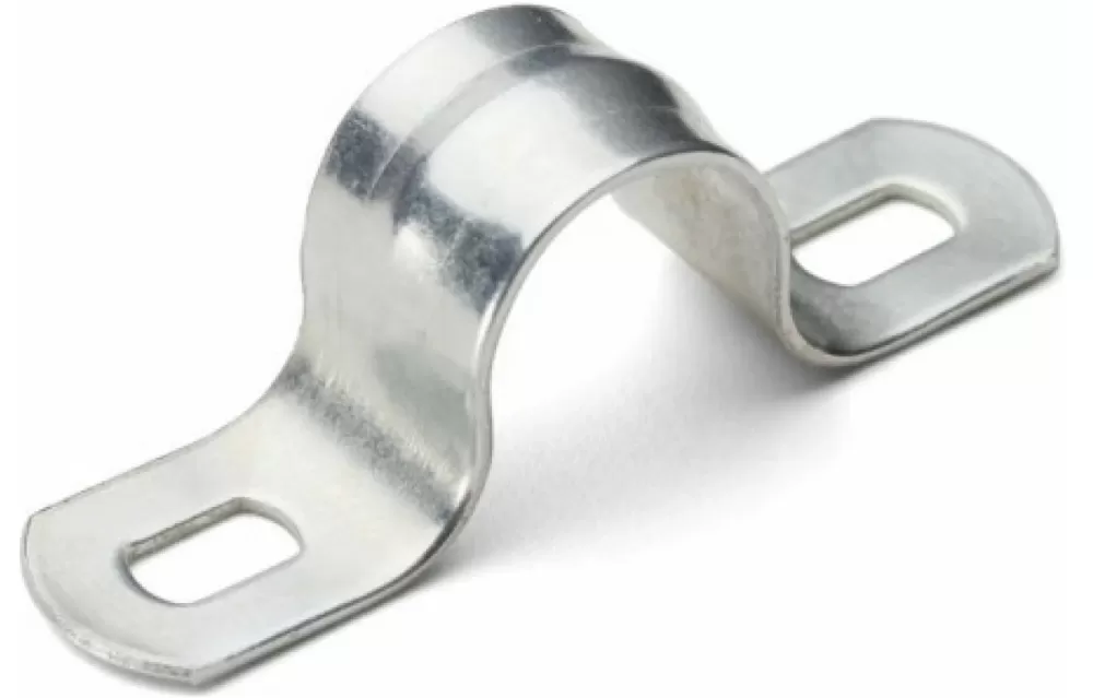 Скоба крепежная двухлапковая d25-26мм метал. оцинк. (уп.100шт) Применяется для прокладки металлорукавов, стальных и полимерных труб