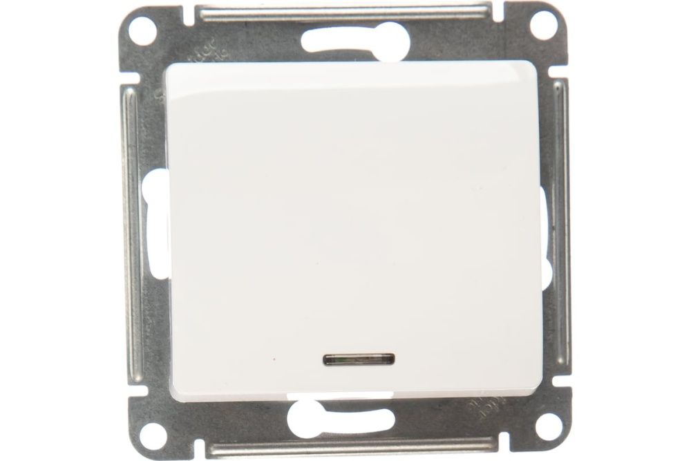 Механизм Systeme Electric (ранее Schneider Electric) серии Glossa (цвет белый) выключателя 1-клавишного с подсветкой подходит для сетей 250 В, на ток 10 А.