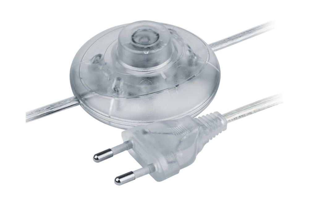 Шнур выполнен из негорючего полипропилена, оснащен вилкой и выключателем