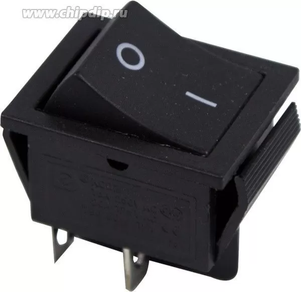 Выключатель клавишный 250V 15А (4с) ON-OFF черный предназначен для коммутации электрических цепей переменного тока напряжением до 250В. Клавишные (Рокерные) выключатели применяются в качестве комплектующих изделий различного электрооборудования (в сетевых фильтрах и удлинителях, аудио-оборудовании, блоках питания, электроустановках на различных производствах, автомобилях, и многих других местах). Такой клавишный переключатель имеет два положения. Принцип действия основан на перемещении клавиши в одну из позиций. Для переключения в нужное положение требуется приложить некоторые усилия на клавишу. Монтаж осуществляется без применения винтов на плоских панелях толщиной от 0.8мм до 3мм. Подключение контактов осуществляется плоской клеммой 6.6мм, либо с помощью пайки.