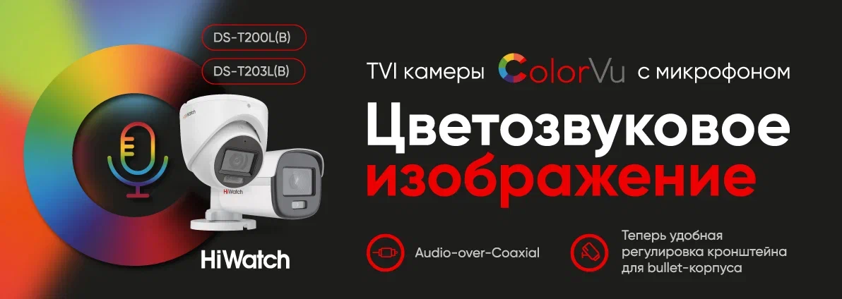 В линейке ColorVu TVI-камер HiWatch произошло обновление 2 Мп моделей DS-T200L(B) и DS-T203L(B), в которых теперь появились встроенный всенаправленный микрофон и поддержка технологии AoC для передачи аудиосигнала по коаксиальному кабелю вместе с видеоданными. Таким образом, значительно упрощается монтаж оборудования, так как для его подключения не нужен отдельный микрофонный провод. При использовании качественного коаксиального кабеля типа RG6 максимальная дальность передачи аудио для 2 Мп камер составит до 600 метров.